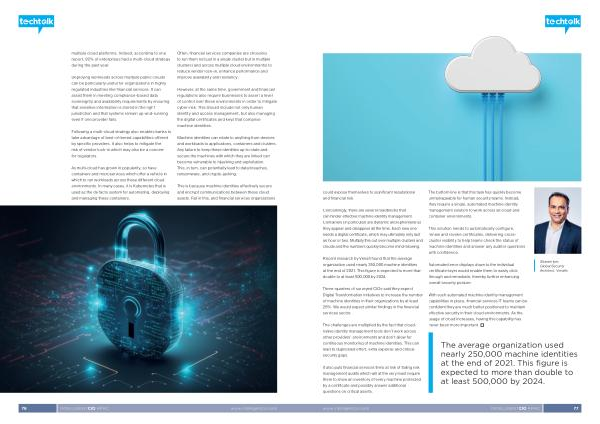 This is because machine identities effectively secure and encrypt communications between these cloud assets . Fail in this , and financial services organizations