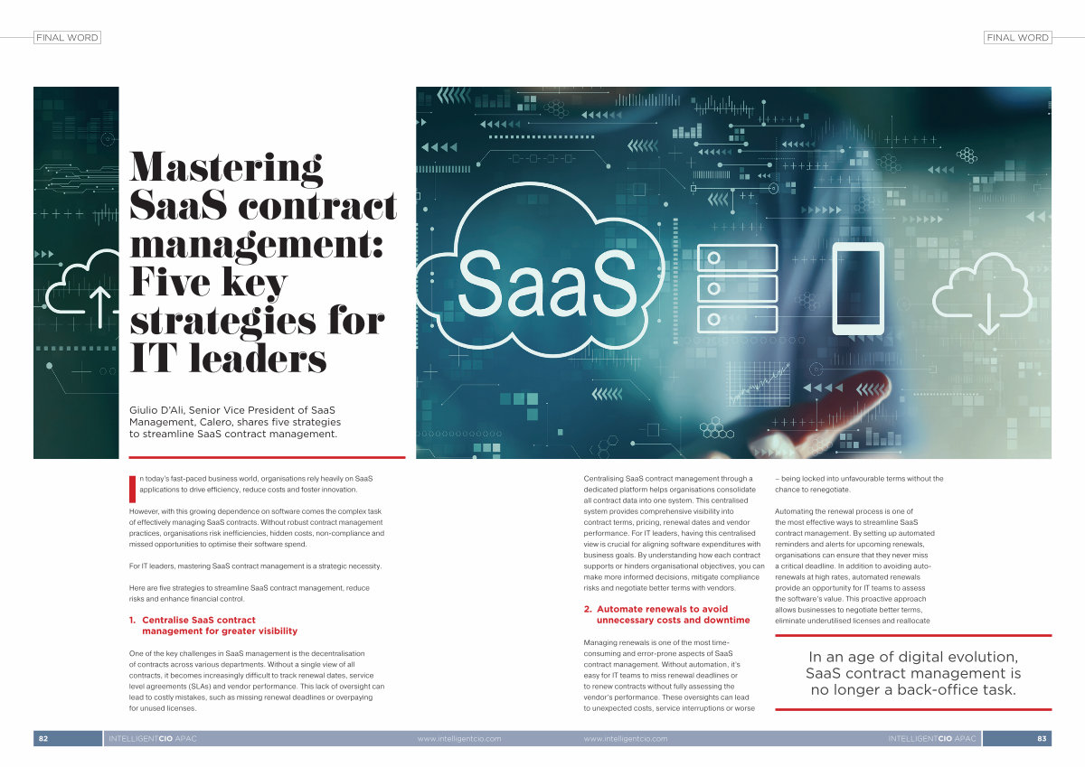 Centralising SaaS contract management through a dedicated platform helps organisations consolidate all contract data into one system. This centralised system provides comprehensive visibility into contract terms, pricing, renewal dates and vendor performance. For IT leaders, having this centralised view is crucial for aligning software expenditures with business goals. By understanding how each contract supports or hinders organisational objectives, you can make more informed decisions, mitigate compliance risks and negotiate better terms with vendors.