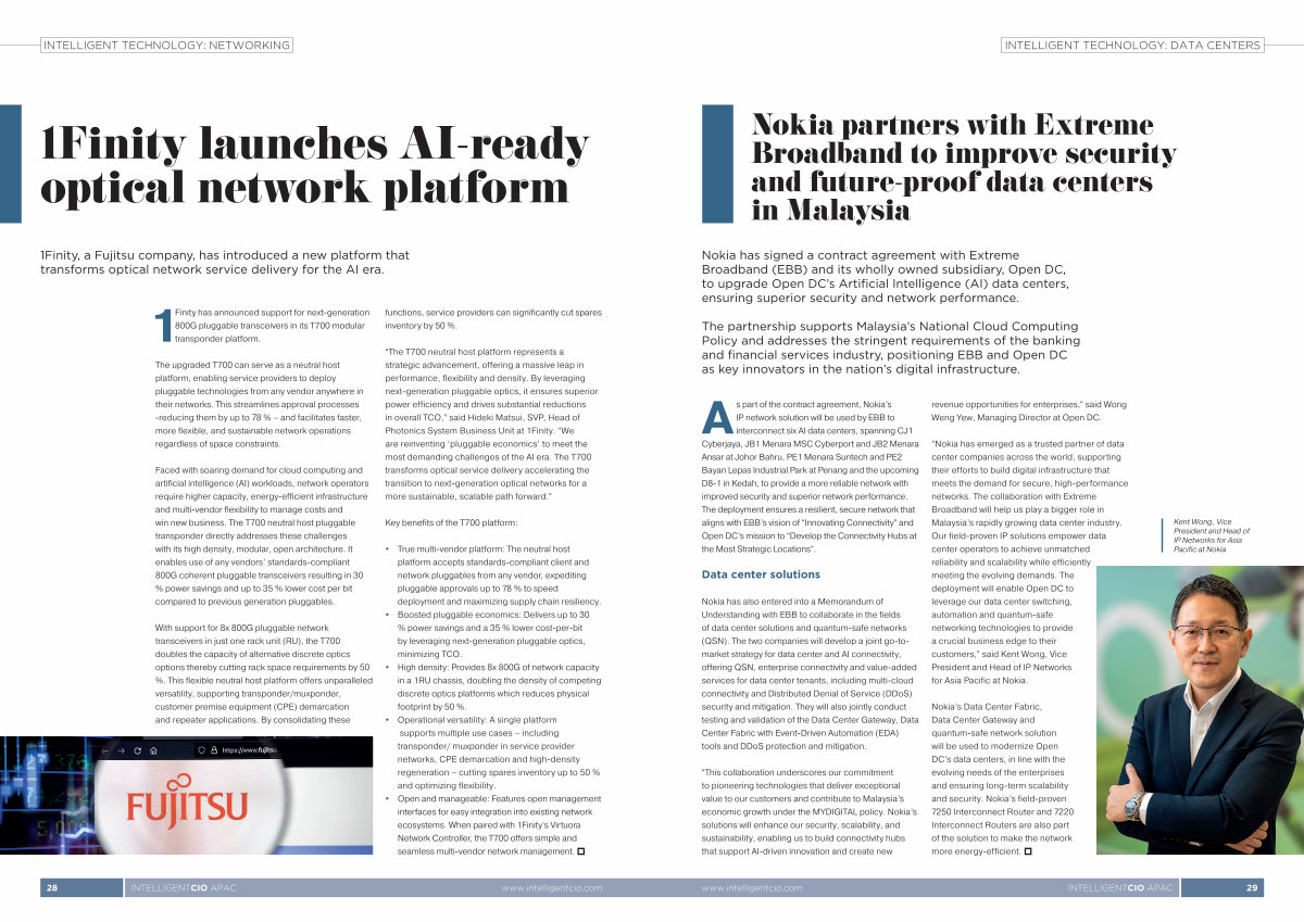 “ This collaboration underscores our commitment to pioneering technologies that deliver exceptional value to our customers and contribute to Malaysia’ s economic growth under the MYDIGITAL policy. Nokia’ s solutions will enhance our security, scalability, and sustainability, enabling us to build connectivity hubs that support AI-driven innovation and create new revenue opportunities for enterprises,” said Wong Weng Yew, Managing Director at Open DC.