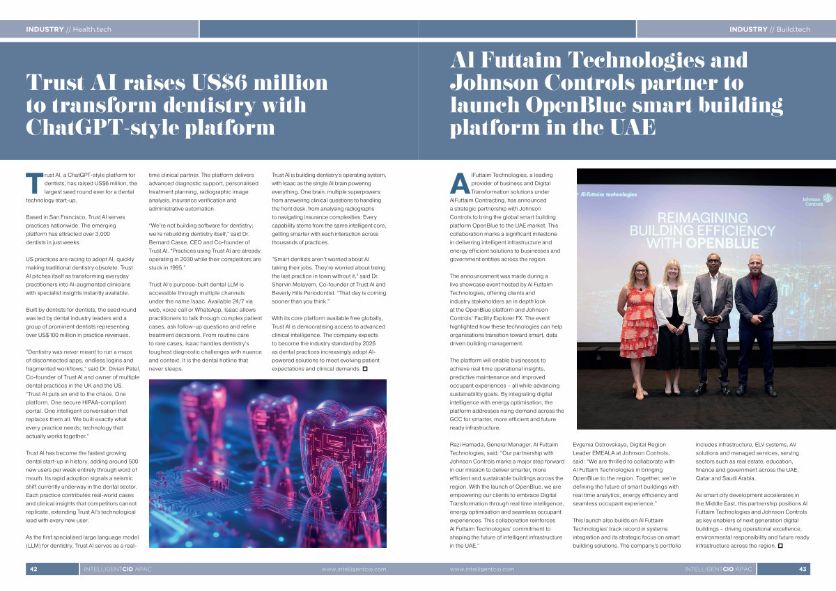 With its core platform available free globally, Trust AI is democratising access to advanced clinical intelligence. The company expects to become the industry standard by 2026 as dental practices increasingly adopt AIpowered solutions to meet evolving patient expectations and clinical demands. p