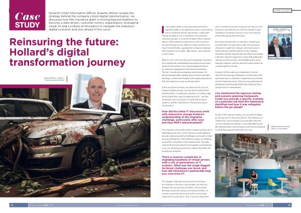 In an industry built on risk assessment and longstanding tradition, the digital revolution is presenting both a challenge and an opportunity. Leading the charge at Hollard, one of Australia’ s most dynamic insurance groups, is Chief Information Officer Graeme Wilson. With a wealth of experience in the insurance and technology sectors, Wilson is at the forefront of a major transformation, guiding the company’ s strategic shift towards a more agile, data-driven, and customercentric future.