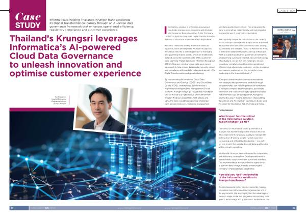 The rollout of Informatica’ s data governance at Krungsri has had several positive impacts thus far. It has improved the way data quality is managed by shifting from IT writing scripts – which was timeconsuming and difficult to standardise – to a selfservice model that standardises all data quality rules within a single repository.