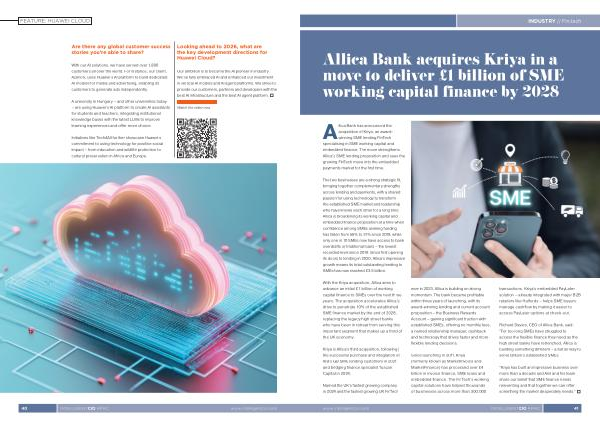Allica Bank has announced the acquisition of Kriya, an awardwinning SME lending FinTech specialising in SME working capital and embedded finance. The move strengthens Allica ' s SME lending proposition and sees the growing FinTech move into the embedded payments market for the first time.