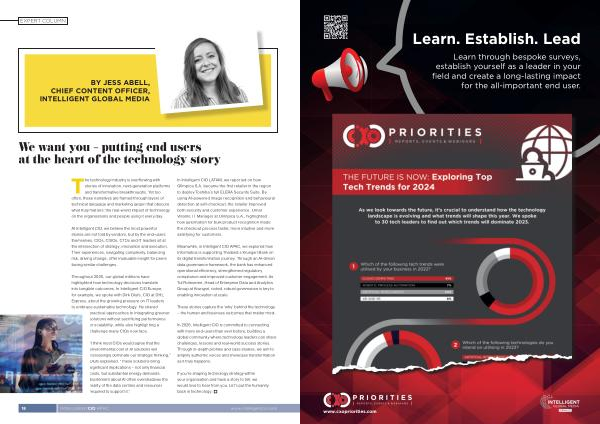 Learn through bespoke surveys, establish yourself as a leader in your field and create a long-lasting impact for the all-important end user. www. cxopriorities. com