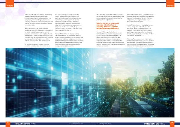 Across APAC, utilities are already realising tangible benefits. In the Philippines, Meralco’ s smart metering rollout with Itron has enabled realtime visibility and faster outage response. Itron’ s Grid Edge Intelligence solutions extract actionable insights directly from the data processed in field devices, enabling proactive management of voltage, load and DER variability.