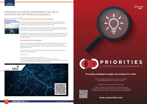 At a time when most industries are starting to feel the influence of AI, the geospatial sector is at a transformation point. Idox Geospatial’ s Nicholas Duggan FRGS CGeog( GIS), shares how we’ re integrating AI across multiple areas of our work – with compelling results.